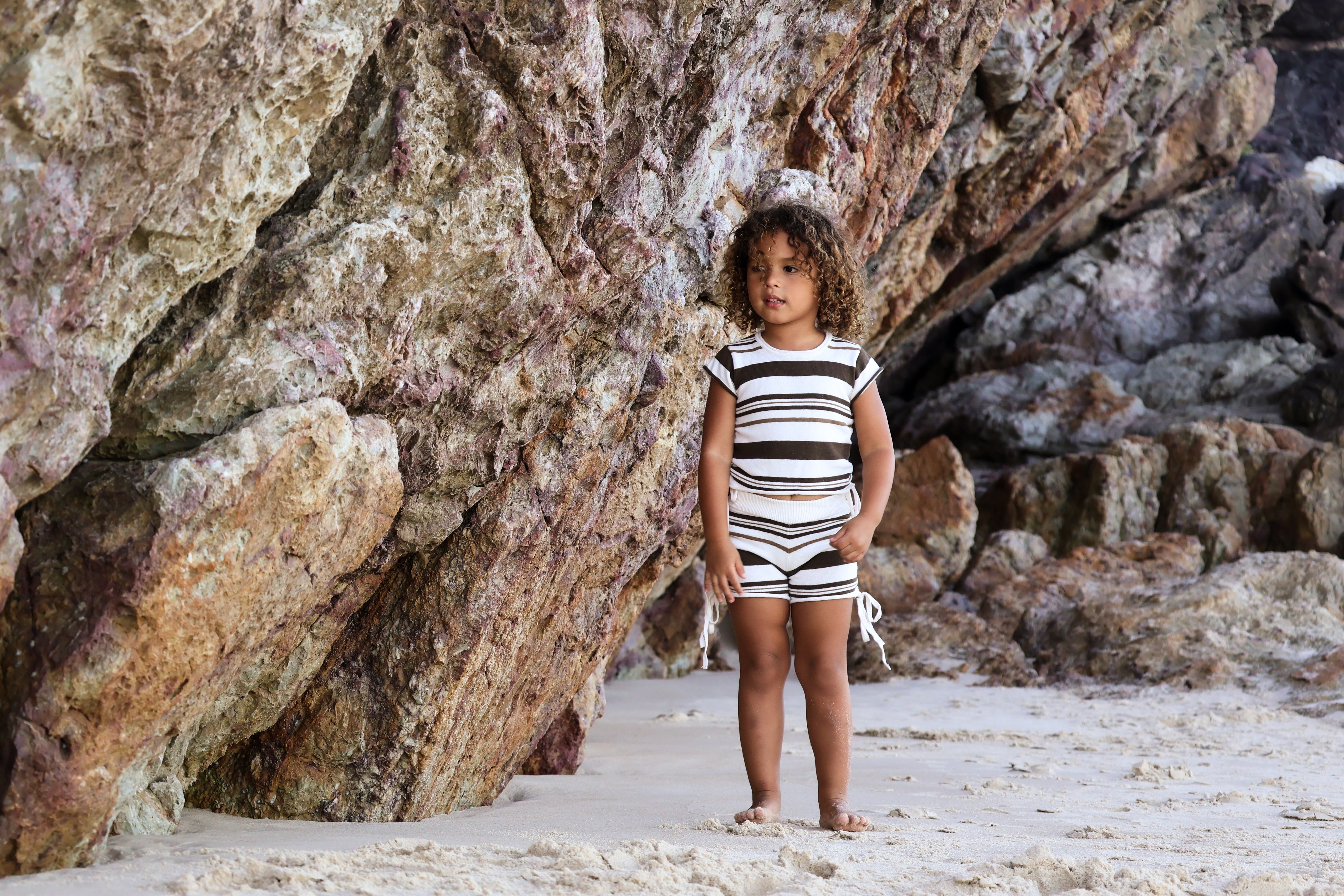 Gathered Knit Shorts | Earth Stripe